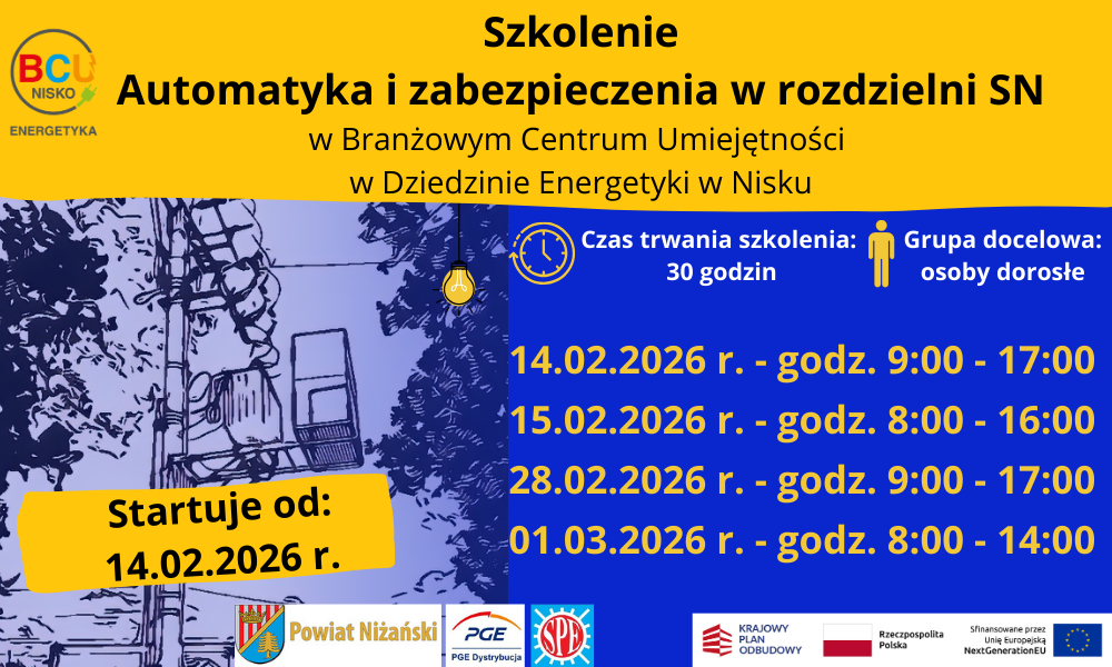 Informujemy, że termin kolejnego szkolenia dla osób dorosłych z zakresu Automatyki i zabezpieczeń w rozdzielni SN ulega zmianie.